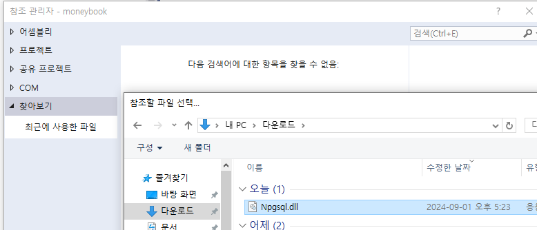 준비해둔 DLL 파일을 선택하여 프로젝트에 추가한다.