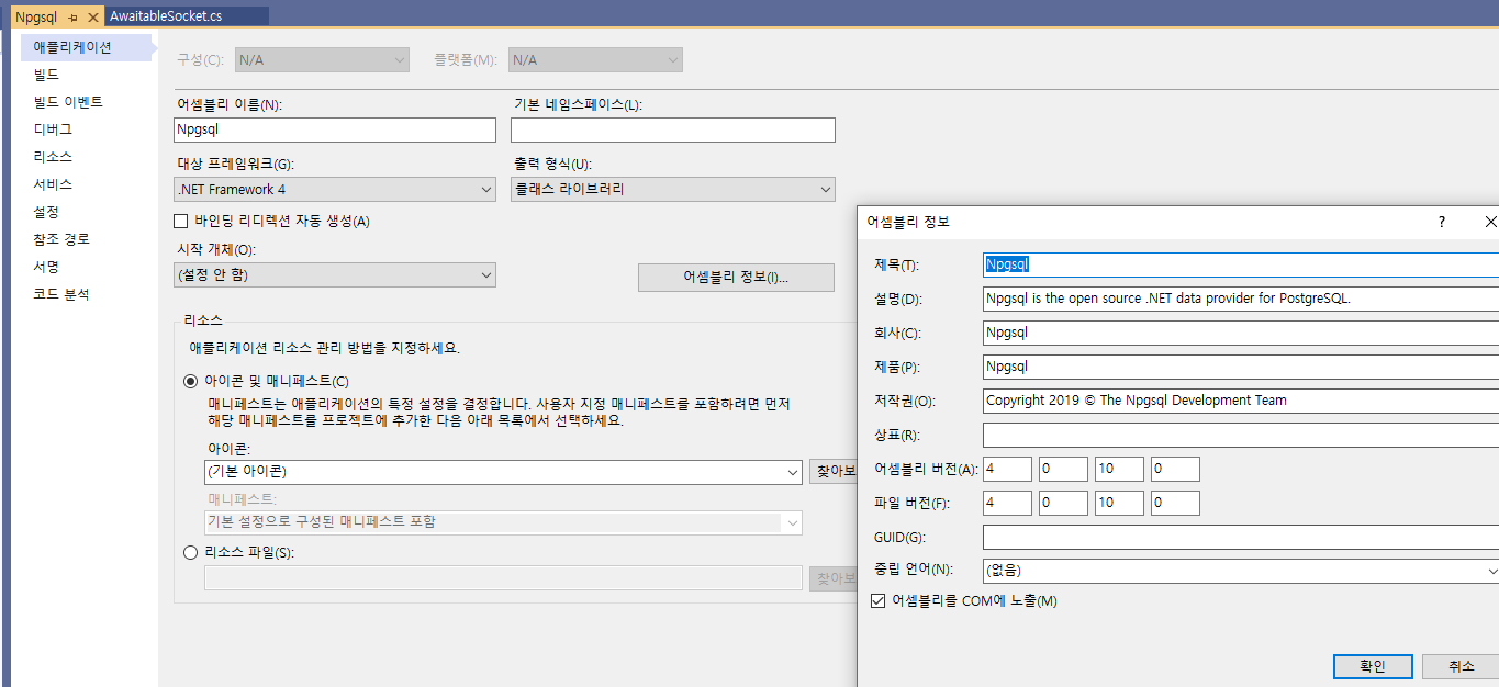 어셈블리 정보에서 DLL 파일의 정보를 설정할 수 있다.