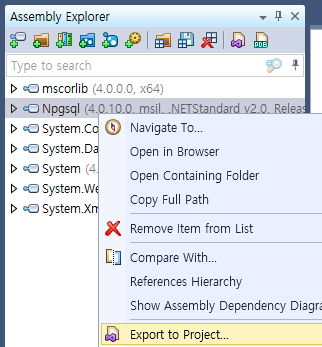 dotPeek 에서 원하는 DLL 파일을 연다.